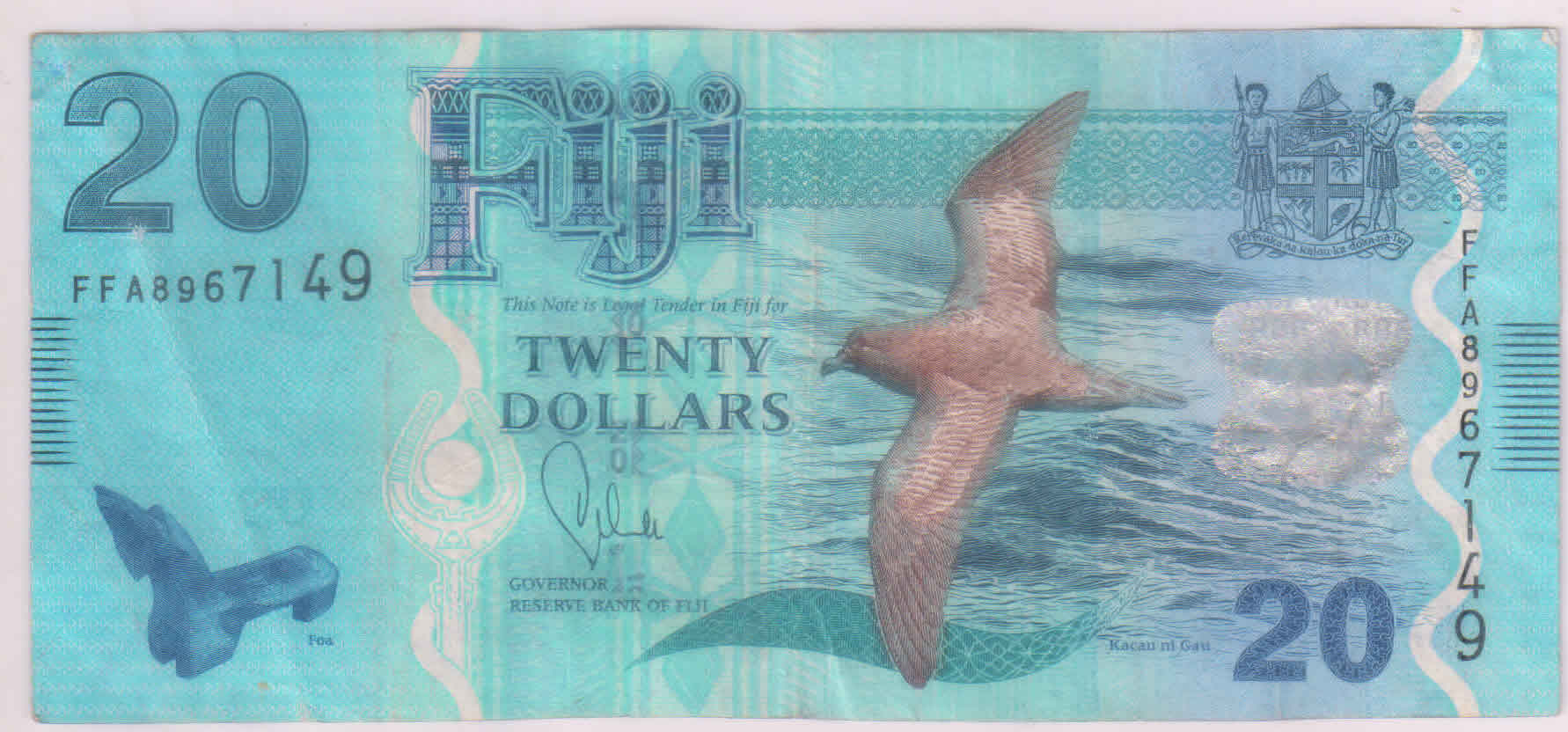 Fiji 20 dollars used currency note KB Coins & Currencies